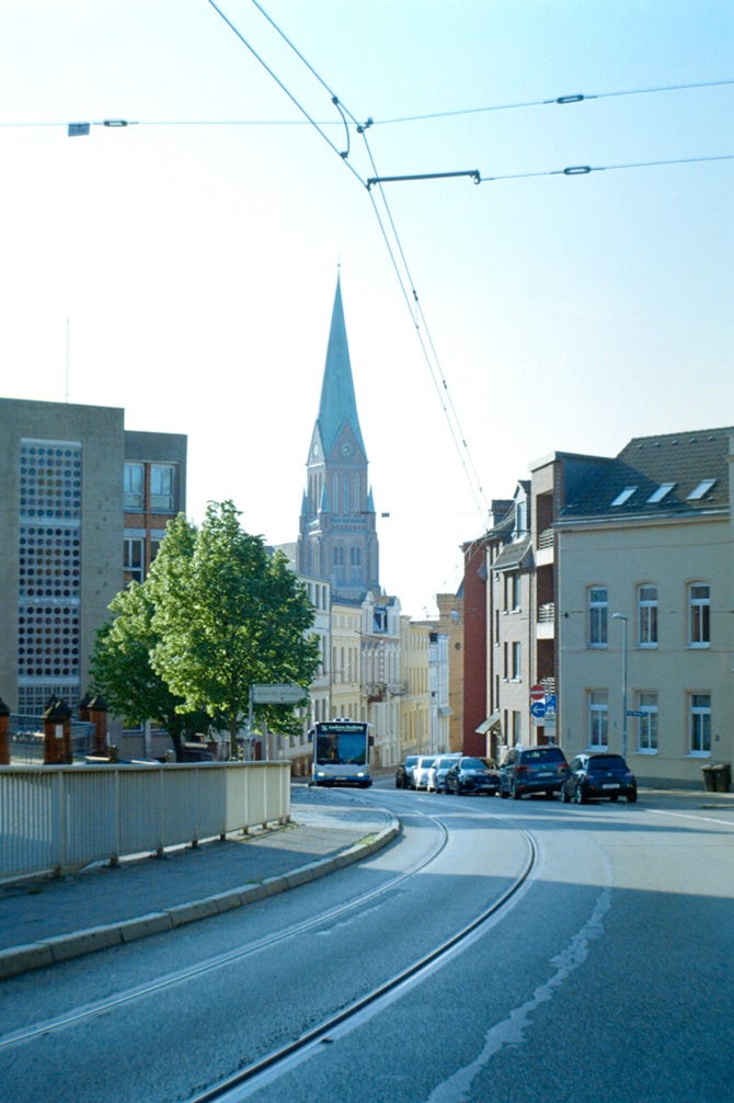 Eine Tour durch die Paulsstadt war am Pfingstmontag den 24.05.2021 in den frühen Morgenstunden geplant. Mit dabei waren die Praktica B100 und mal wieder mal eine Praktica MTL 50. Als Objektive nutzte ich das Pentax Asahi Super-Takumar 55 mm 1.8 und als Leihgabe das Meyer Optik Görlitz Orestor 135 mm 2.8. Als Film habe ich den Kodak Gold 200 verwendet. Die Entwicklung übernahm das Labor safelight in Berlin. Digitalisiert habe ich die Negative selber.